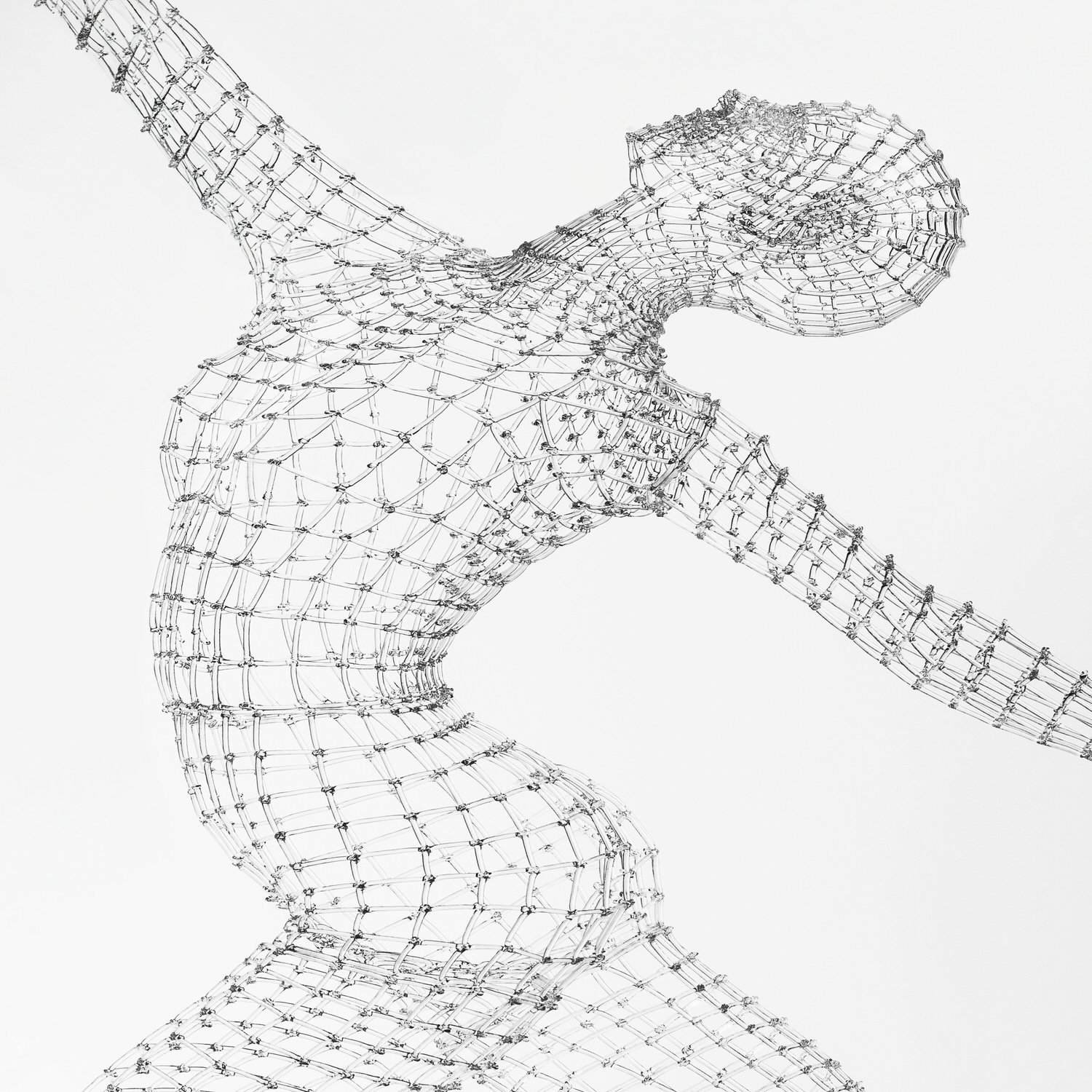 通常のコンピューターグラフィックスであれば、最も解像度を割くべきは「顔」や「鼻のあたり」といった視線が集まる場所です。アニメーションであれば口の周囲が最も変形します。しかし、現実に立つマネキンにおいて氏は、体重を支える足や力を分散させる腰に、最も濃密な構造を注ぎ込みつつ、「存在の美」のための構造として、脚部、腰、上半身といった人体の美をメッシュで追求しています。