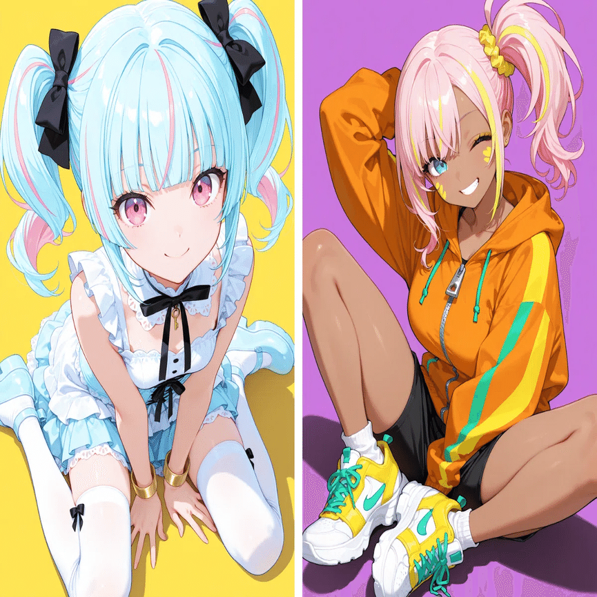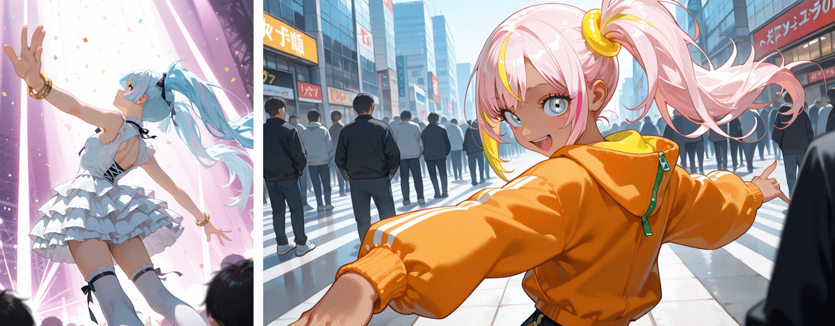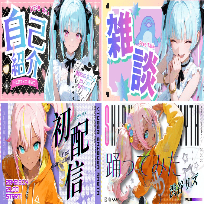 [期間限定公開中]さてAICUコラボクリエイターの 道草ざすこ(X@zasuko_michiksa) さんと学ぶ【AIキャラ開発スタートガイド】。今回はこの連載のために開発されたバーチャルアイドル「渋谷リズ」・「響姫メイ」のキャラクターデザインから、この連載を通して獲得できる「4つの到達点」を確認していきましょう!