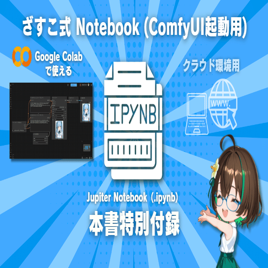 クラウド環境では「notebook(ノートブック)」と呼ばれる起動用プログラムを使って、生成ツール(ForgeやComfyUI)を動かします。notebookは、環境インストールや必要ファイルのダウンロードを自動化してくれるため、初心者でも迷わずに扱うことができます。