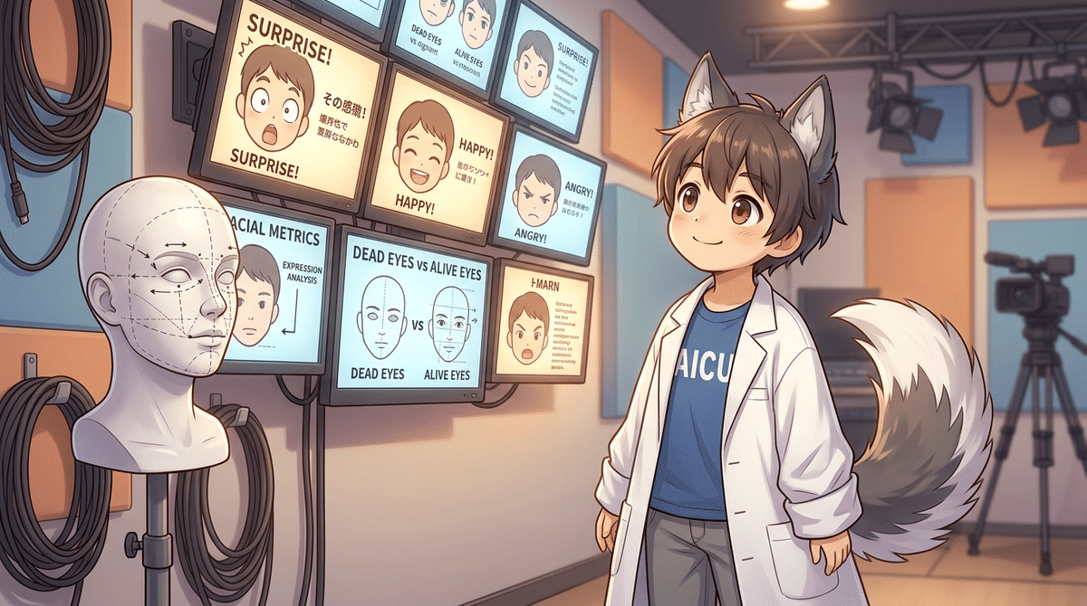 さらに深い議論として「死んだ目」と「生きた目」の話がありました。AI生成動画の最大の課題の一つは、キャラクターの目です。両目が同じ一点にフォーカスしていれば「生きている」と感じるが、微妙にずれると「死んだ目」に見える。キャッチライト(目の輝き)の有無、3秒以上同じ場所を見つめ続けるかどうか——こうした微細な違いが、視聴者に無意識の違和感を与えます。白井先生がカメラの前で実演した「死んだ目」と「生きた目」の切り替えは、参加者全員が即座に違いを認識できるものでした。「なぜわかるのかわからないけど、わかる」——それが人間の目の解像度です。