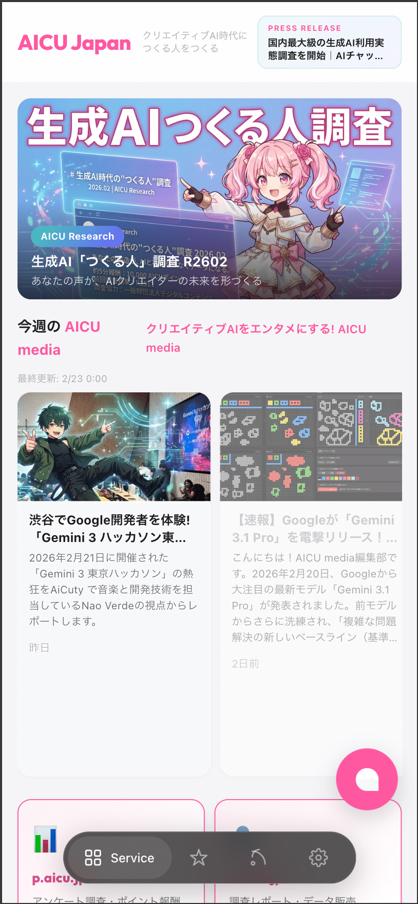 ③ 調査レポートや実験サービス展開の『u.aicu.jp』