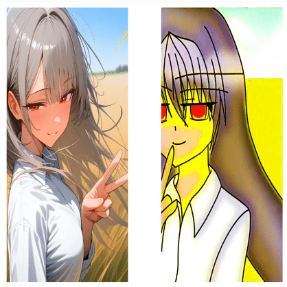 さて、実際に生成してみましたが、同じプロンプトでも全然雰囲気が違います。漫画やアニメ風ではありますが、なんというか「ヘタウマ」です。