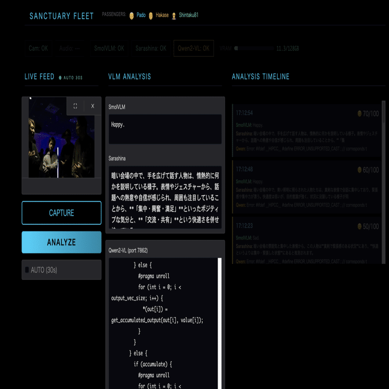 DGX(GB10)でVLM2つ(Sarashina2.2+SmolVLM)とQwenを動かしてリアルタイム感情分析LLLM作ったー!