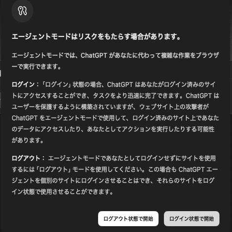 最後に、エージェントモードにおけるリスクの説明です。