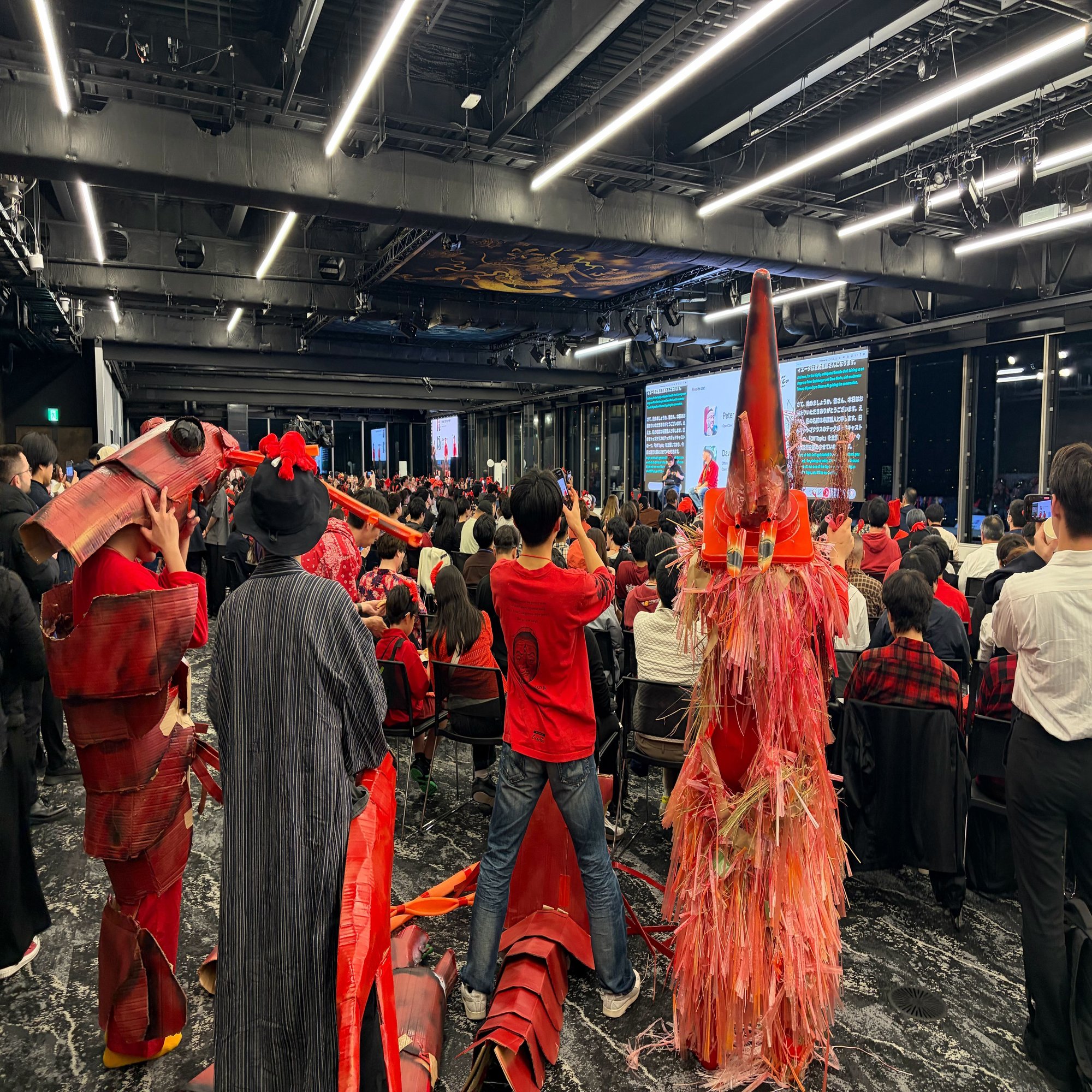 ドレスコードである「赤」や「ロブスター」のアイテムを身にまとった参加者が集い、会場はさながらテクノロジーの祭典のような、自由でエネルギッシュな雰囲気に包まれていました。