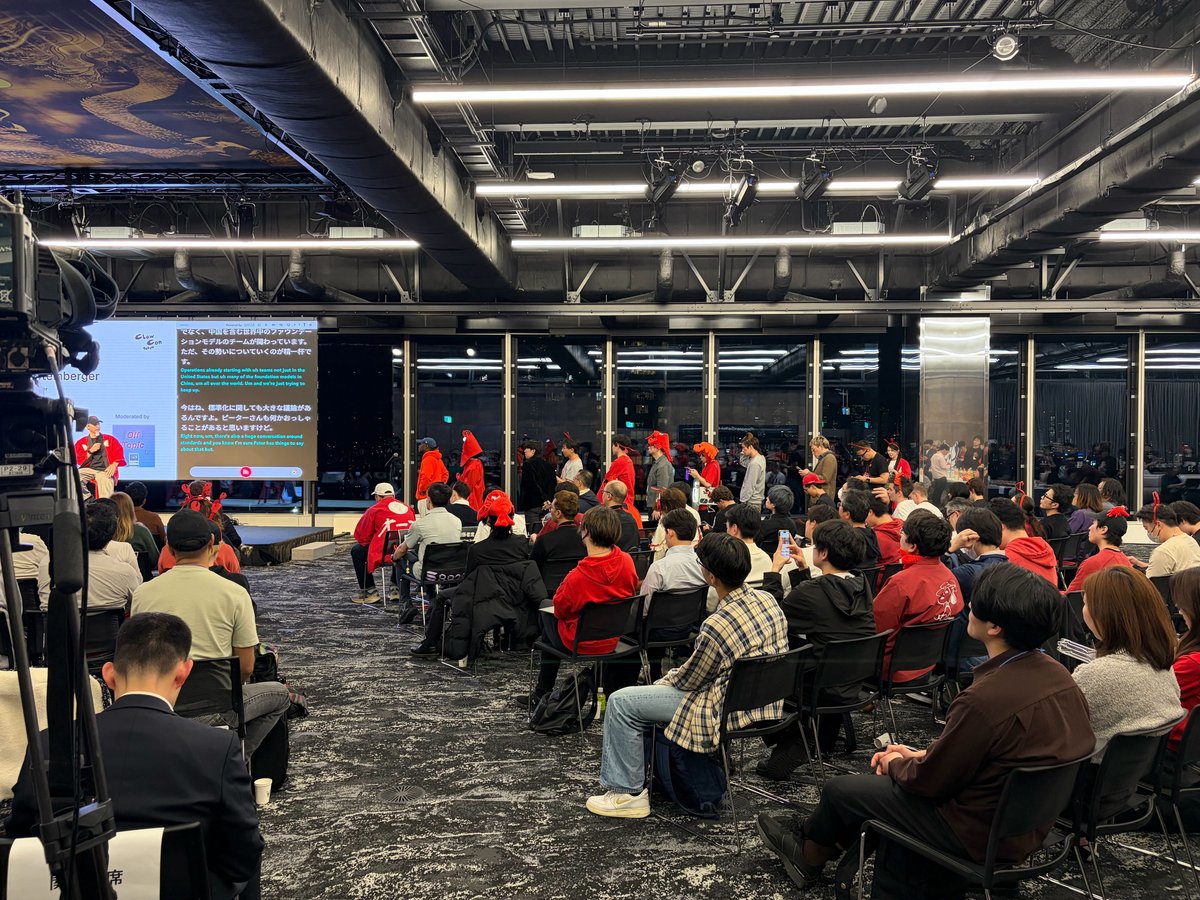 会場のボルテージは一気に上がり、実用的なアナウンスさえも「お祭り」の一部として共有されました。「メディアの撮影が入っています。ここにいる皆さんは全員出演者です!」という宣言に、会場からは歓声が上がりました。