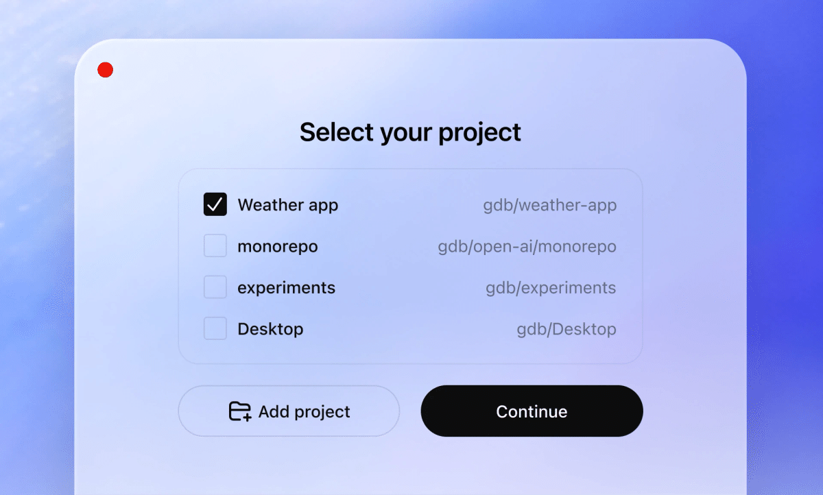 3. Codex が作業するコンピュータ上のフォルダーまたは Git リポジトリを指定します