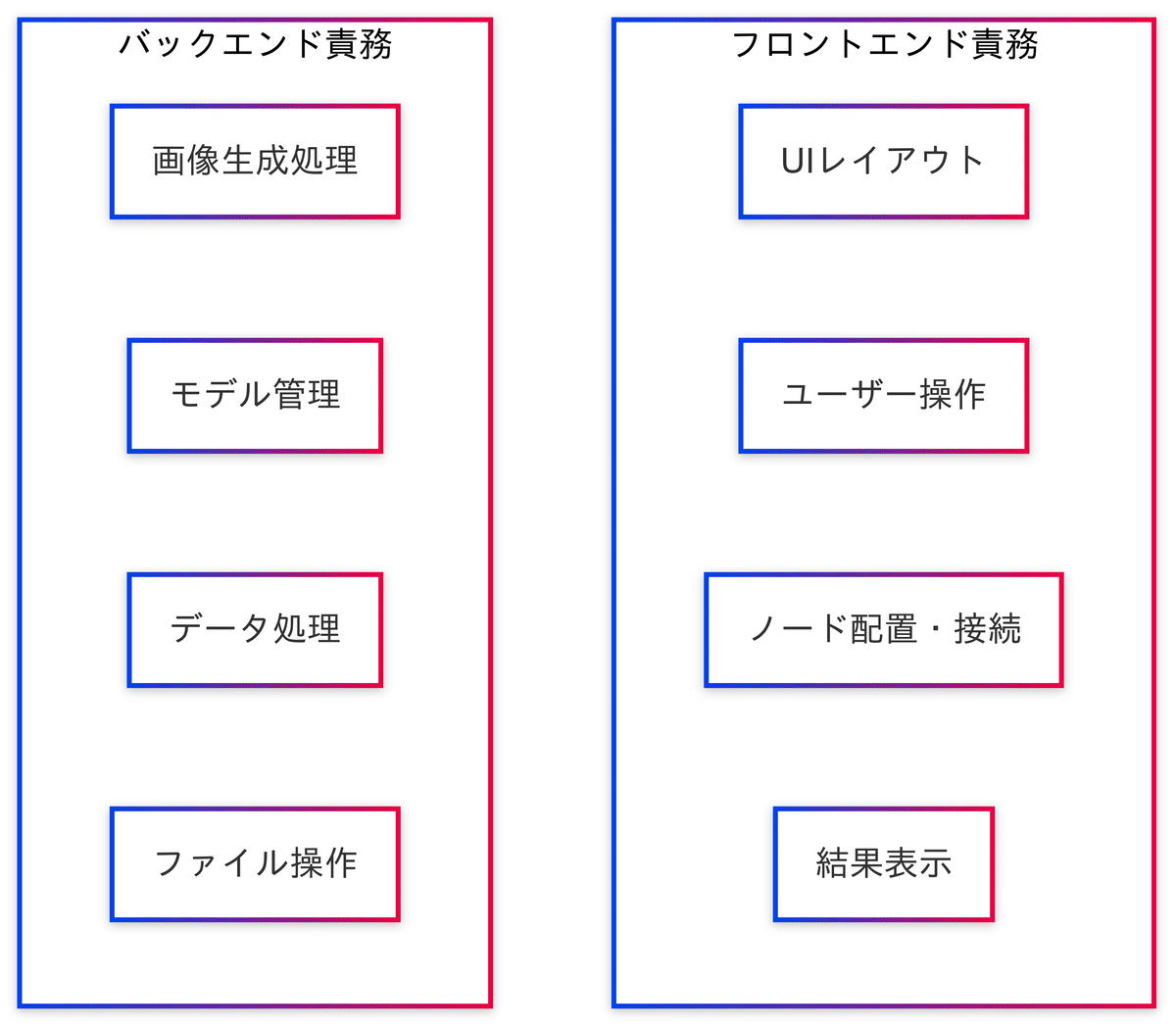 フロントエンド(JavaScript/HTML)とバックエンド(Python)の分割、サーバーがStable DiffusionなどのAI処理を担当し、UIはユーザー操作と可視化部分を担当するというモデルを理解しました。 -
