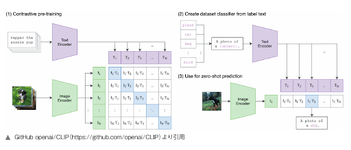 「CLIP(Contrastive Language-Image Pre-training)」は、OpenAIが2021年2月に公開した、言語と画像のマルチモーダルモデルです。Stable Diffusionでは、プロンプト解析にテキストエンコーダーが使用されています。