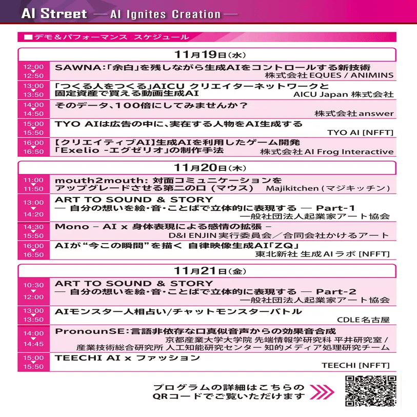 AI Streetでは、3日間にわたり多様なAIクリエイションが大集合!
