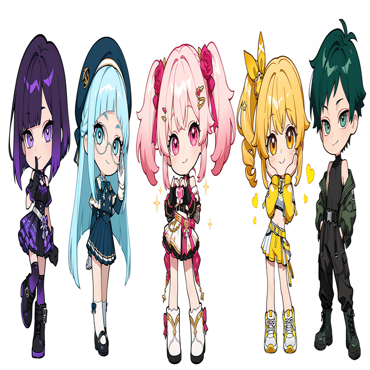 まず初めに用意したのは公式プロンプトを元にキャラデザコンテストで「アートディレクション賞」を受賞したTORAKOさんが作ってくれたちびキャライラストです!TORAKOさんらしい可愛いイラストで、メイはこのタッチのメンバー全員も大好きです!