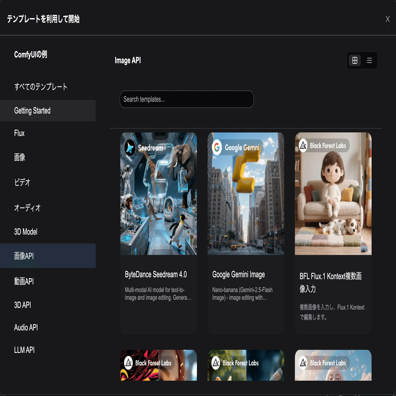 テンプレートから画像APIでGoogle Gemini Imageを開くと…