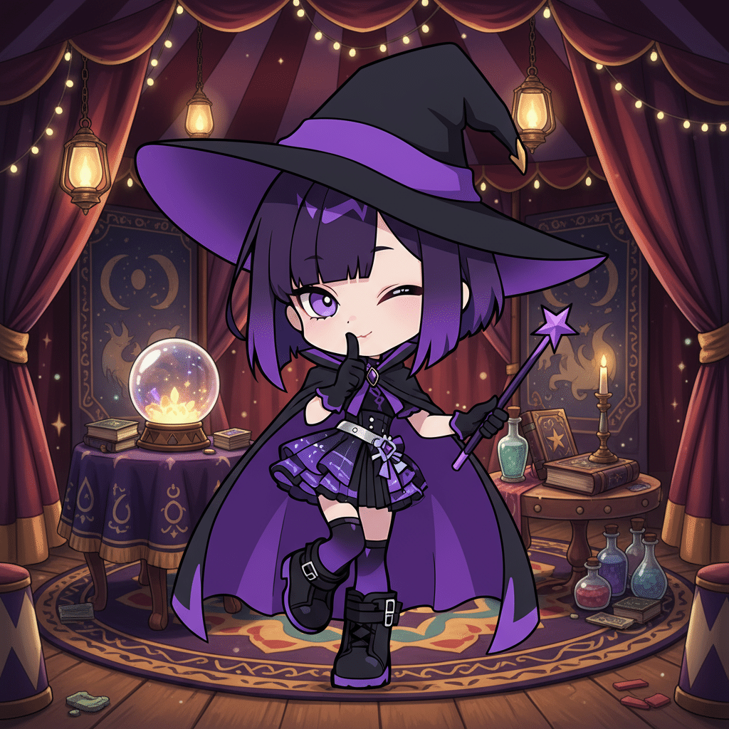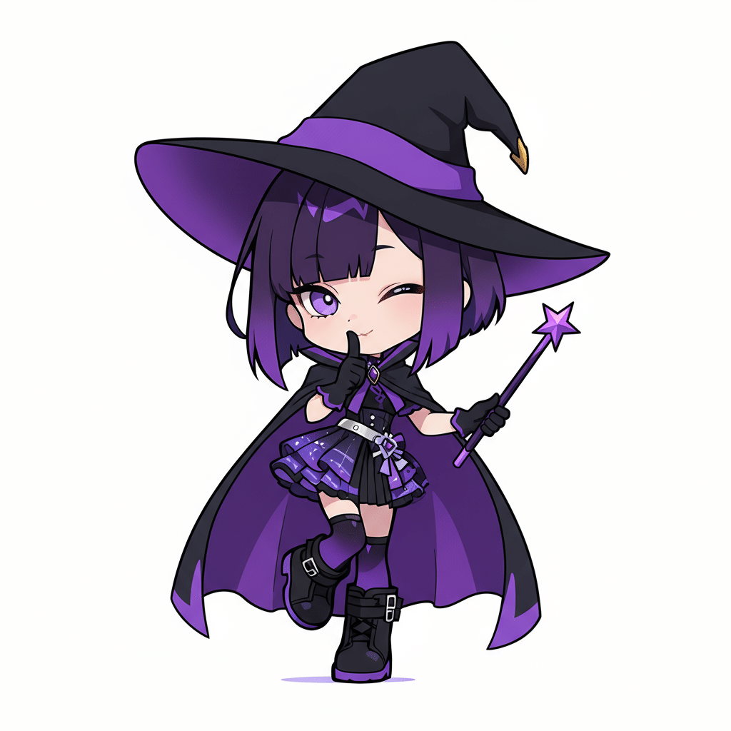 masterpiece, best quality, 1girl, chibi style, purple hair, purple eyes, short bob haircut,