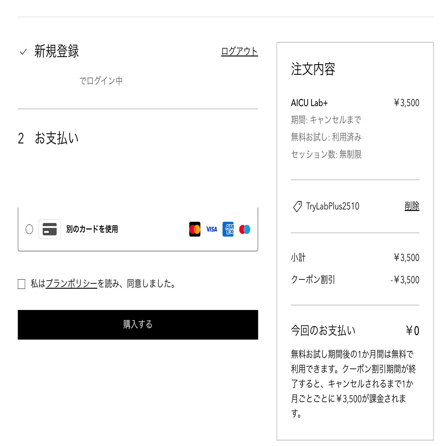 "TryLabPlus2510" 2025年10月13日申し込みまで有効です。