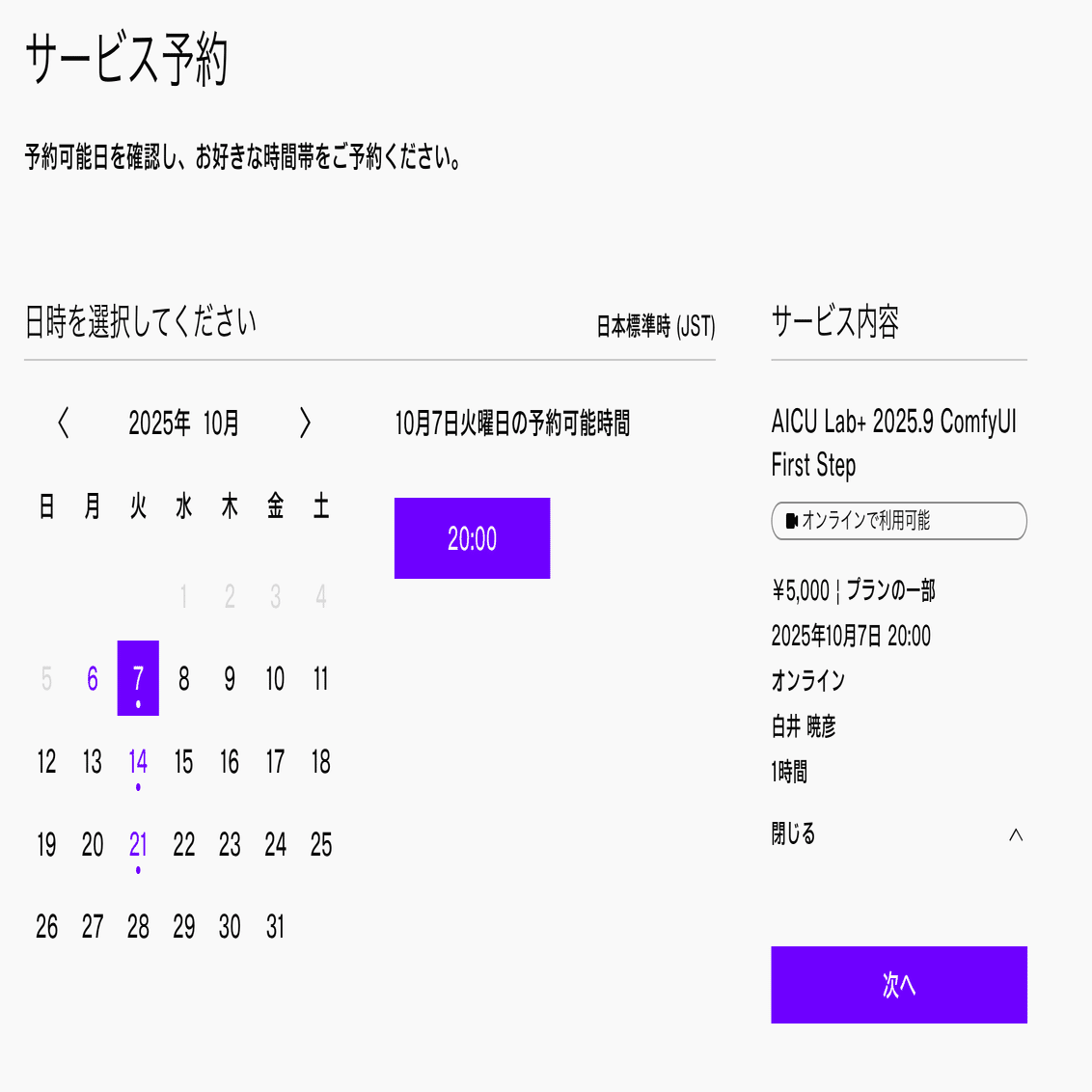 10月7日を選択し、次へ。
