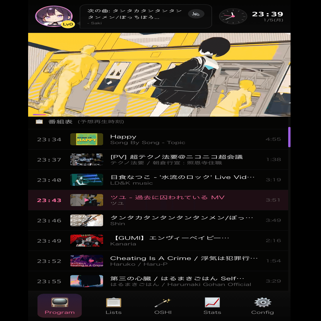 来週枠の確定: 誰かが番組を最後まで完走すると、その枠が「確定」され、次週の同じ時間に継承。ファンの集合知で理想のセットリストや放送局を作り上げます。