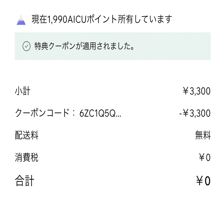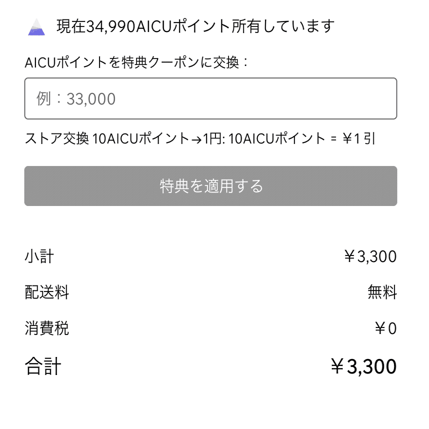 商品の購入 お支払い1円ごとに → 1 AICUポイント獲得