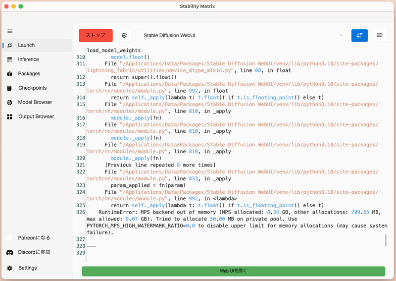 Stability Matrixでのエラーは英語とコマンドラインで表示されるので敬遠されがちですが、実際には自力で環境構築を進めるのに比べて理解しやすい形式になっています。インストール時のエラーについて、多くの場合は「もう一度試せばよい」ということも多いので、諦めずに繰り返しインストールと、翻訳や検索をしてみると理解に繋がって無駄な時間を過ごすことがないでしょう。