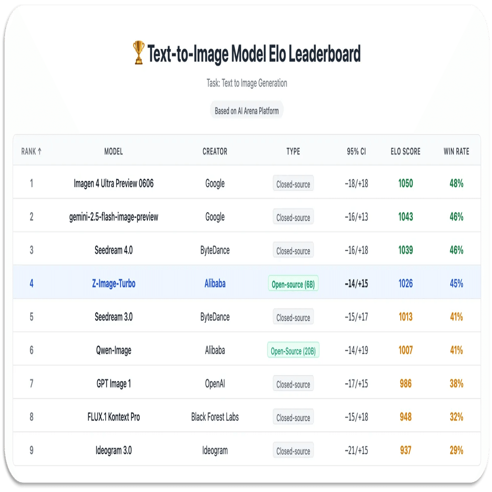 Imagen 4 Ultra Preview 0606> gemini-2.5-flash-image-preview>Seedream 4.0 > Z-Image-Turbo > Seedream 3.0 > Qwen-Image > GPT Image 1 > FLUX.1 Kontext Pro という順番
