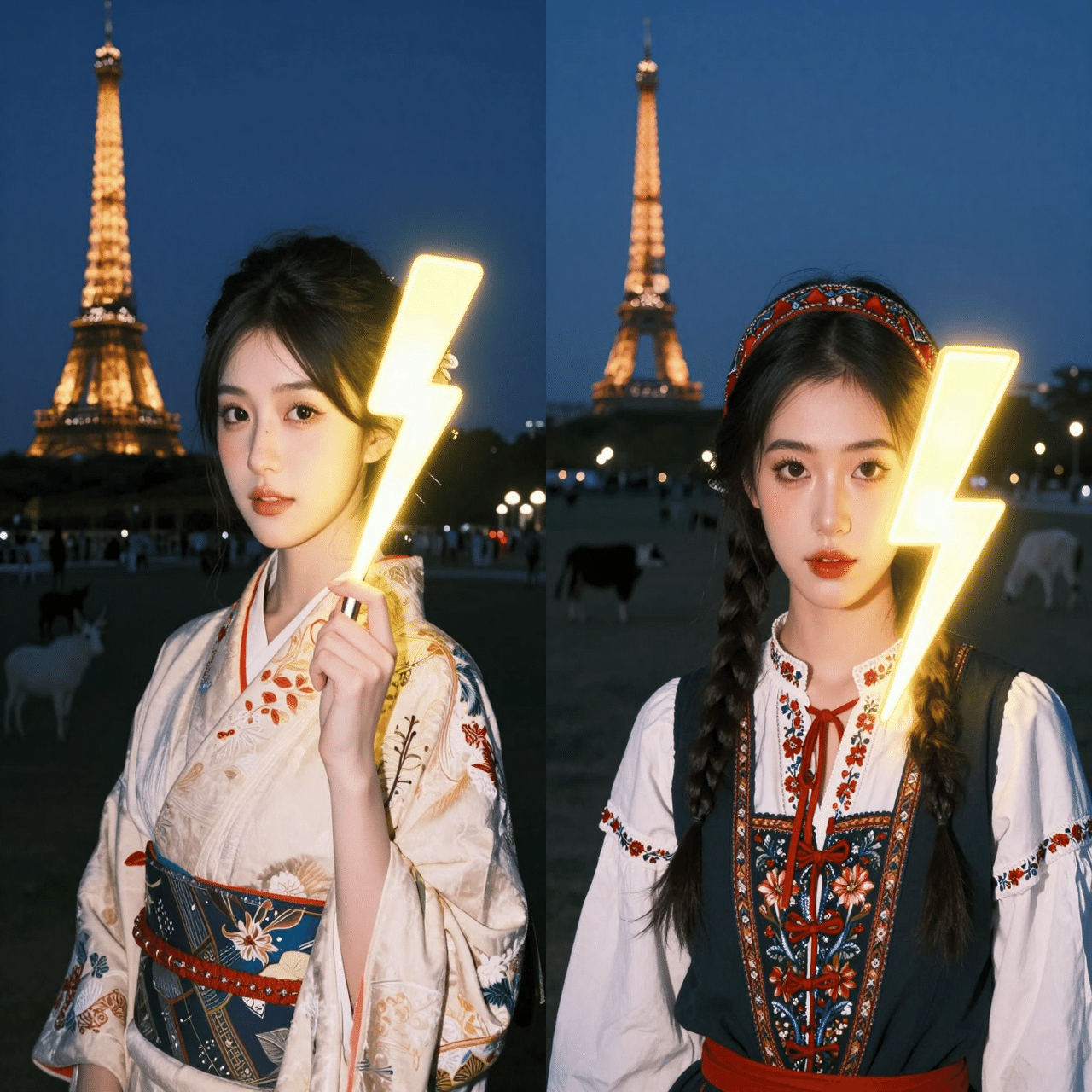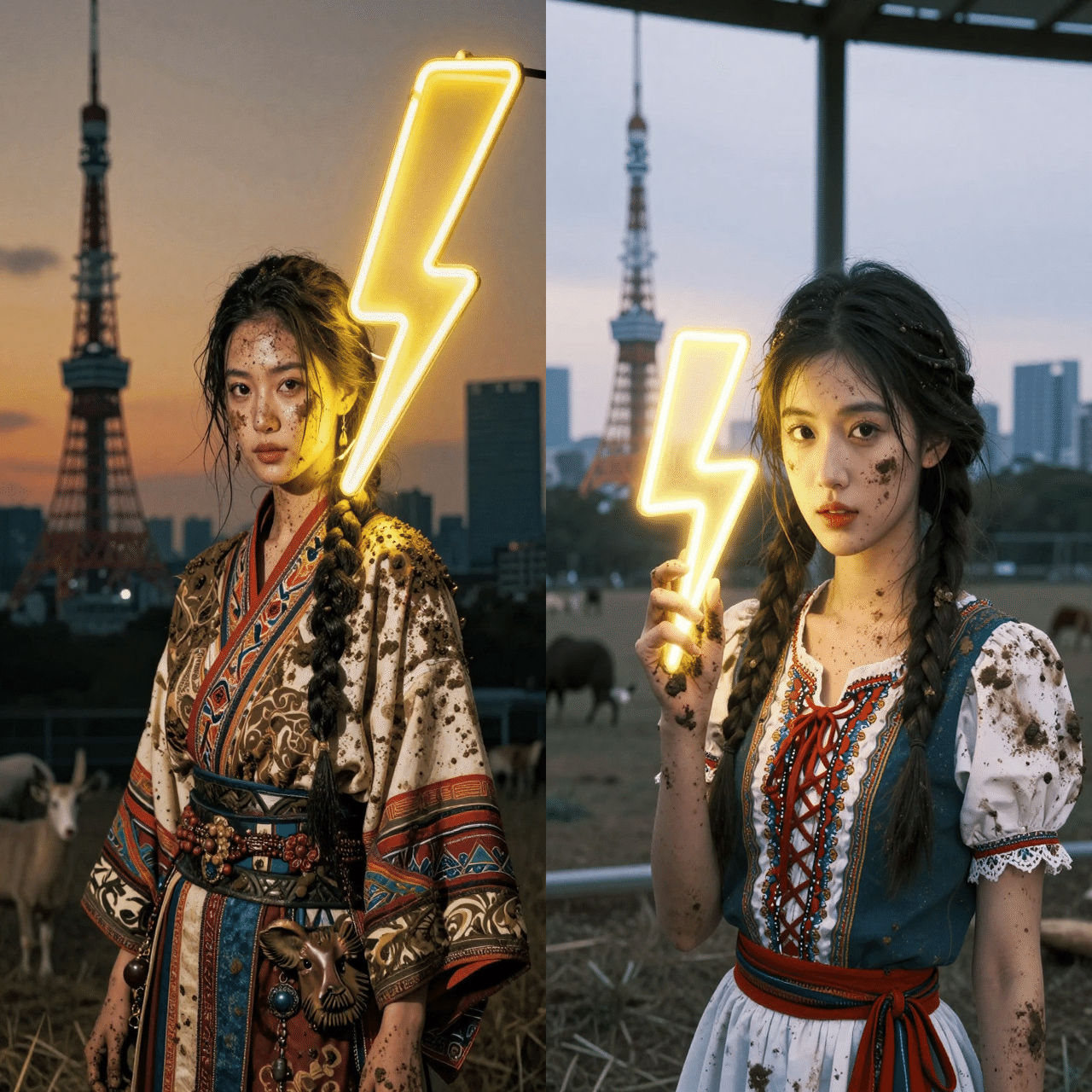 「稲妻ランプ(⚡️)」みたいな現代的な要素と、伝統的な「漢服」をミックスしても、ちゃんと破綻せずに描けるのがこのモデルの強みなんだって!